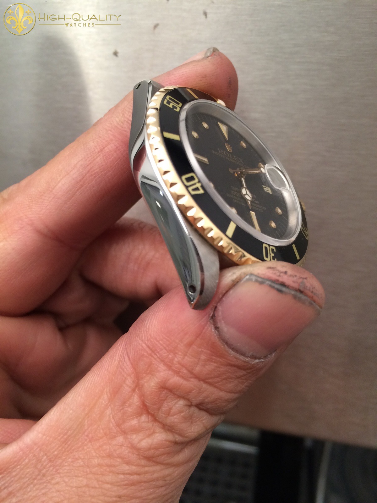 Here we see the chamfer of an unpolished GEN RLX 16710 and the Reshaped Aftermarket Case